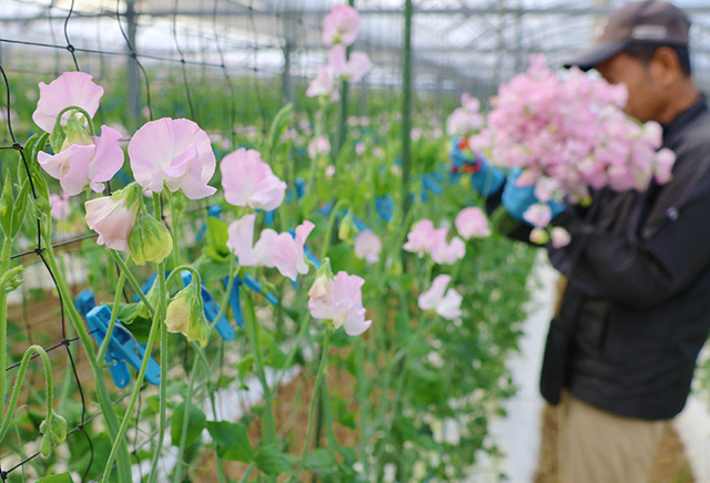スイートピーの生産量日本一を誇る日南市で、収穫が本格化している。ビニールハウス内でピンクや薄紫色のかれんな花が咲き、農家らが収穫作業に追われている。 ... [続きを読む]