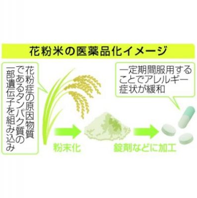 「花粉症米」実用化を促進、政府 医薬品に活用、アレルギー緩和
