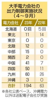 2023/10/16国内外ニュース 主要大手電力会社が2023年度上半期(4〜9月)に再生可能エネルギー事業者に対し一時的な発電停止を求める出力制御を計194回実施したことが16日、共同通信のまとめで分かった。前年同期比3・1倍に上り、過去最多を更新した。太陽光や風力といった再...
