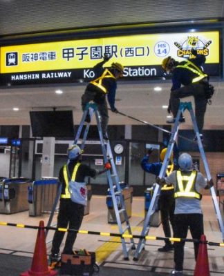阪神Vセールに列、駅看板も虎柄 一夜明け祝福ムード、地元・関西