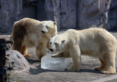 ホッキョクグマに氷の涼、北海道 旭川の旭山動物園