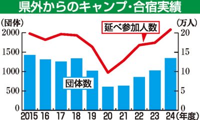 スポーツキャンプ・合宿受け入れ 延べ参加人数過去最多 23年度比19・4%増
