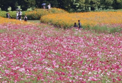 2025/10/10県内一般ニュース小林市南西方の花の駅「生駒高原」で、約100万本のコスモスが見頃を迎えている。色鮮やかな花が秋風に揺れ、来場者の目を楽しませている。同駅によると、見頃は来週いっぱいまで続く見込み。 開花しているのは、ピンクや紫の「センセーション」...