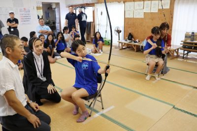 2025/10/10きょうの出来事日向市と交流事業を行っている米ハワイ州パール市・モミラニ小の5、6年児童8人が10日、日向市浜町で四半的を体験した。児童は初めて触れる日本の伝統文化に「すごく楽しい」と目を輝かせた。 男児2人、女児6人が8日夜、ハワイから来日。8...