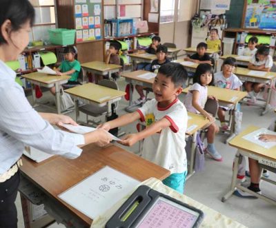 2025/10/09きょうの出来事2学期制を導入している宮崎市の公立小中学校72校で9日、1学期の終業式があった。5日間の秋休みを挟み、2学期は15日から始まる。 東大宮小学校(外山保宏校長、702人)の終業式は体育館であり、代表児童2人が作文を発表。1年の湯地真...