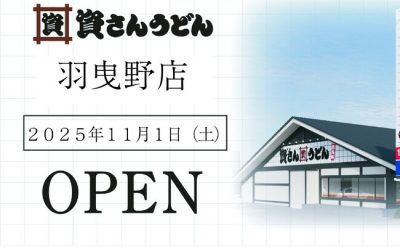 2025/10/09サンプル株式会社資さん創業から約50年に渡って愛される北九州発祥のうどんチェーン店「資さんうどん」を展開する株式会社資さん(本社:福岡県北九州市、代表取締役社長:佐藤 崇史)が11/1(土) 羽曳野店をグランドオープン! 「資さんうどん羽曳野店」...