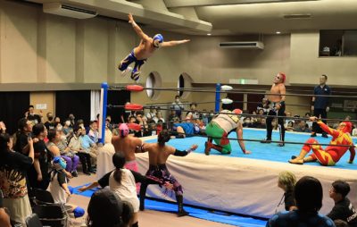 2025/10/07トピックnews福岡市のプロレスリング「華☆激」のチャリティー大会は5日、都城市中央公民館であった。メキシコ人レスラーの大技が飛び交い、満員の観衆約300人を沸かせた。 昨年に続き3回目。今年は都城大会の予定はなかったが、同プロレス団体代表のアス...