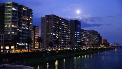 中秋の名月 大淀川河畔に輝く 宮崎市