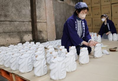 来年の干支「巳」容器入り焼酎 日南・古澤醸造で出荷ピーク