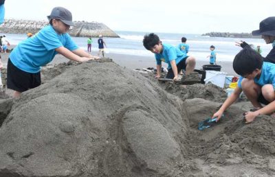 ウミガメ上手にできたよ 宮崎市で砂の造形コンクール