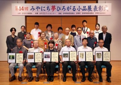 2024/06/03県内一般ニュース宮崎市のみやざきアートセンターで開催していた「第14回みやにち夢ひろがる小品展」(宮崎日日新聞社主催)は2日、表彰式と作品講評会を開き、閉幕した。 表彰式は同市の宮日会館であり、入賞者43人に賞状と副賞を贈った。宮崎日日新聞社の田...