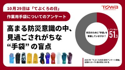 【てぶくろの日 記念アンケート 調査結果】あなたの防災用品は大丈夫? 調査で判明、見過ごされがちな“手袋の盲点”