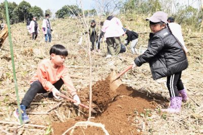 2024/03/12地域の話題宮崎市高岡町の有志らでつくる高岡桜プロジェクト(瓦田英介代表、22人)の桜の植樹会は、同町の天ケ城公園近くの山林で10日にあった。同町の高岡、穆佐小の児童や保護者ら約40人が、ソメイヨシノの苗木約30本を植えた。 子どもたちの郷土...