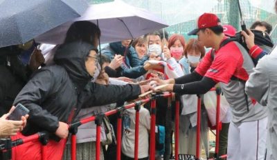 プロ野球宮崎県キャンプ 間近に選手「興奮」 初日、県内外ファン熱い声援
