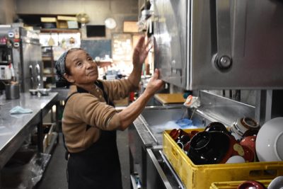 都農町の岩田ミチ子さん(83)、47年勤めた「田舎家」退職