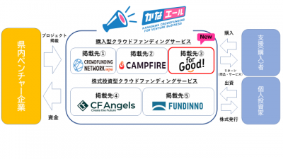 2025/09/22サンプル神奈川県県内ベンチャー企業に対するクラウドファンディング支援を拡充 県では、民間のクラウドファンディング事業者と連携し、「かながわベンチャー限定クラウドファンディング(愛称:かなエール)」により、ベンチャー企業の成長に向けた資金調達を支援...