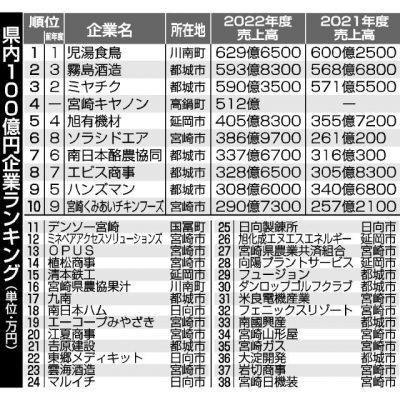 売上高100億円超 県内38社 前年比8社増、最多 22年度