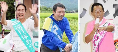 2025/09/21県内一般ニュース新人3人による三つどもえの争いとなったえびの市長選は20日、選挙戦最終日を迎えた。元市議の森賢治さん(61)と中山義彦さん(77)、前市議会議長の遠目塚文美さん(49)=いずれも無所属、届け出順=の3陣営が市内各地を駆け回り、最後の訴えに...