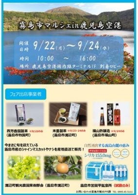 【9/22(月)~24(水)】「霧島市マルシェin鹿児島空港」を開催します!!