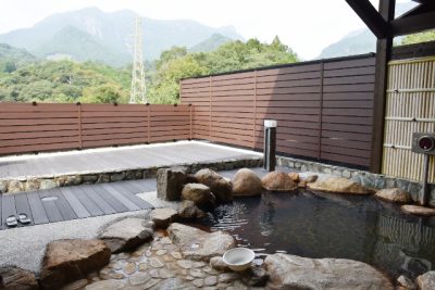 「祝子川温泉」リニューアルオープン ウッドデッキ新設、薪サウナも設置予定