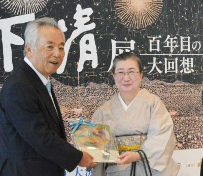 2023/10/28県内一般ニュース宮崎市の県立美術館で開かれている特別展「生誕100年 山下清展―百年目の大回想」(宮崎日日新聞社など実行委主催、大淀開発特別協賛、宮崎太陽銀行協賛)の来場者が27日、1万人を突破し、記念セレモニーがあった。 1万人目となった宮崎市...