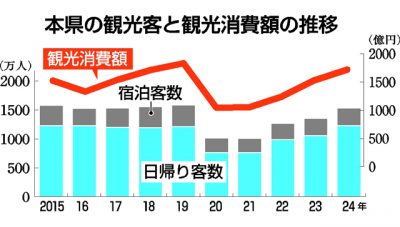 本県観光客1531万人 コロナ前96%、インバウンド消費額最高