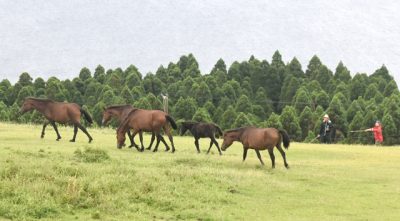2023/09/23トピックnews串間市の都井岬で23日、国天然記念物の岬馬を柵の中に追い込む「馬追い」が行われた。害虫駆除や健康管理のために年1回行われる伝統行事。時折小雨の降る中、参加者は協力して秋の草原で群れを柵まで導いた。 都井御崎牧組合(迫田幸四郎組合長...