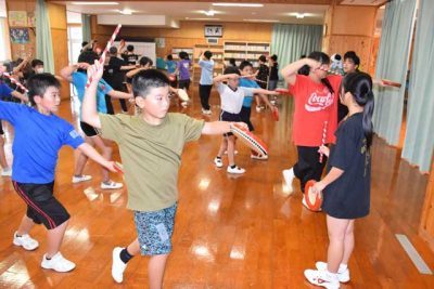 2023/08/20地域の話題高千穂町の姉妹都市・沖縄県豊見城市の中高生7人が19、20日、同町の上野小(末原幹大校長、56人)を4年ぶりに訪問。児童たちに沖縄の伝統芸能エイサーを指導し、交流を深めた。 交流は上野小が戦時中に多くの学童疎開を受け入れた縁で始ま...