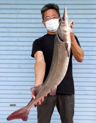 宮崎市大淀川で1メートル超のチョウザメ釣れる