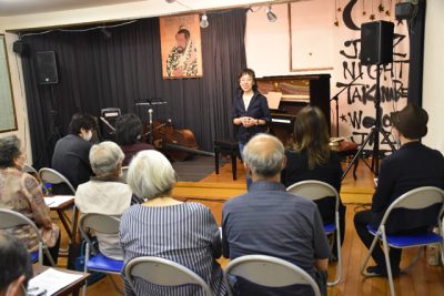 2023/05/23トピックnews高鍋町の南町公民館で開かれている音楽ライブ「ジャズナイトタカナベ」は今月で80回に達した。生の音楽を楽しんでもらい、アーティストには演奏の場を提供したいと始まったライブ。主催者の山本敏生さんが4年前に83歳で亡くなった後、長女・安佐子さん...
