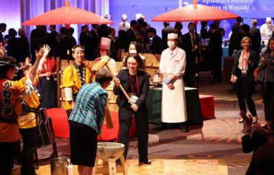 2023/04/22県内一般ニュース先進7カ国首脳会議(G7サミット)宮崎農相会合が22日に開幕するのを前に、農林水産省主催の歓迎レセプションは21日、宮崎市のシーガイアコンベンションセンターであった。「高千穂の夜神楽」などが披露され、宮崎牛や芋焼酎など本県の特産品を各国の...
