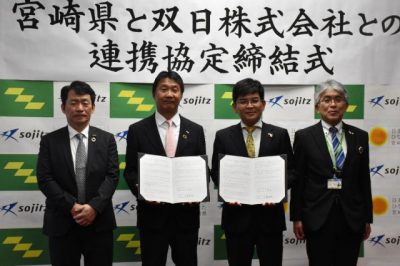 2023/04/20県内一般ニュース県と大手商社の双日(東京)は19日、農業資源を活用した資源循環事業に関する連携協定を結んだ。官民が連携し、県内で生産した作物をバイオマス燃料や家畜用飼料に活用。海外資源に過度に頼らない持続可能な循環型農業に実証的に取り組む。 同社...