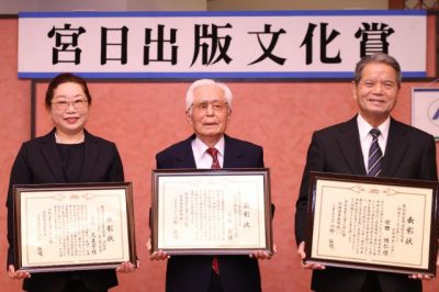 2023/03/23県内一般ニュース本県在住者による優れた図書を顕彰する「第33回宮日出版文化賞」(宮崎日日新聞社主催)の表彰式は22日、宮崎市の宮日会館であった。河野誠司社長が受賞作の著者3人に賞状と副賞を贈り、功績をたたえた。 受賞したのは「神楽のこころを舞いつ...