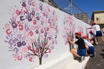 2023/03/17地域の話題卒業を間近に控えた宮崎市・江平小(近藤公博校長、812人)の6年生111人が16日、校門の壁に桜の木をイメージした壁画を制作した。一人一人の手形を花びらに見立て、壁一面に満開の“桜並木”を完成させた。 壁画を描いたのは同校の東門。...