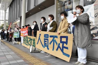 「コロナ禍、待遇改善を」 国立病院看護師ら県内街頭で訴え