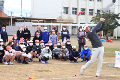 2023/01/28地域の話題宮崎市の宮崎港小(吉弘哲章校長、448人)で27日、同市田野町出身のプロゴルファー小浦和也選手(29)による、プラスチック製クラブと軟らかなボールを使う「スナッグゴルフ」の講習会があった。5年生84人がのびのびクラブを振りゴルフの基礎を学...