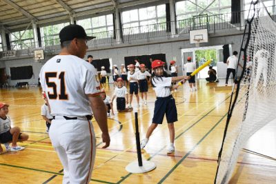 読売ジャイアンツの4選手が指導 宮崎市・池内小で野球教室