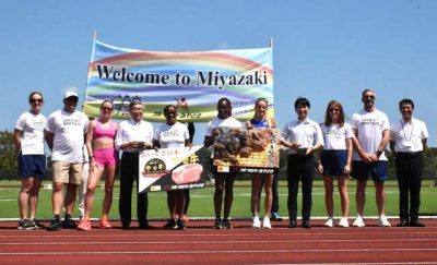 宮崎市で合宿の世界陸上・英国選手歓迎セレモニー