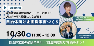 プロポーザル採用率を高める!企画提案書づくりの基本とコツ|自治体営業と官民連携の実践セミナー【無料オンライン】