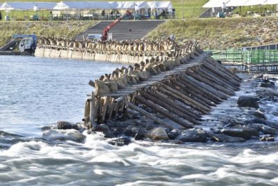 2022/10/25県内一般ニュース延岡市の秋の風物詩「鮎やな」が、同市・大瀬川に完成した。設置は12月4日まで。訪れた人たちは300年以上続く伝統漁法に趣を感じていた。 鮎やなは、産卵のため川を下るアユの習性を利用する漁法。架設工事は、伝統鮎やな師高橋生矢さん(7...
