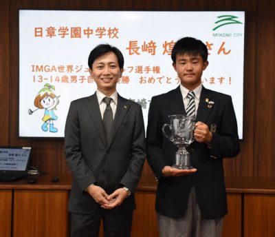 世界Jrゴルフ準優勝 長崎さん(日章学園中)市長表敬