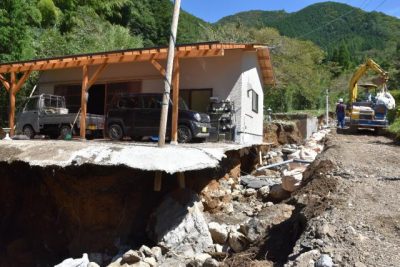 2022/09/22県内一般ニュース台風14号で大きな被害を受けた五ケ瀬町三ケ所の舟の谷集落(3世帯14人)では、孤立状態が続く中、21日も懸命な復旧作業が続いた。同集落には、沢の水が鉄砲水のように一気に流れ込み、道路や倉庫の地盤が深くえぐられ、大量の土砂が住宅の壁まで迫っ...
