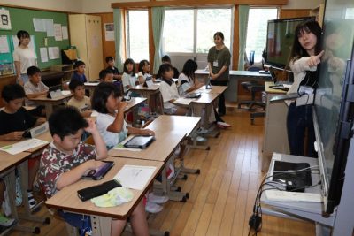 大学生の授業、楽しい 美郷北義務教育学校生徒、プログラミング学ぶ