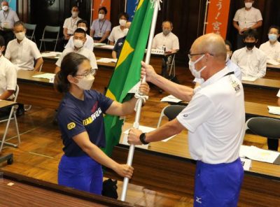国体出場向け一丸 夏季九州ブロック県選手団に団旗