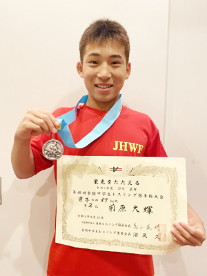 前原(都城)男子57キロ級準優勝 全国中学レスリング