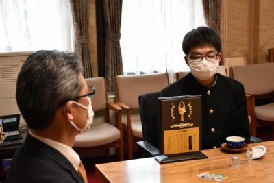 5月の科学コン日本代表、加藤さん(宮崎西高3年)知事に抱負