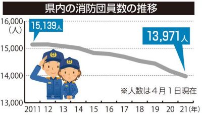 消防団員減少に歯止めを 県内21市町村待遇改善