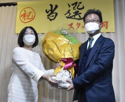2022/01/24県内一般ニュース読谷山さん当選確実の一報が届くと、延岡市平原町の選挙事務所では支持者から拍手が沸き上がった。姿を見せた読谷山さんは、満面の笑みで支持者たちと喜びを分かち合った。「絶対に後戻りしない。市民目線の改革を皆さんと一緒に進める」と2期目への決意を...