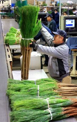 2021/12/04きょうの出来事正月飾りの松を競る「松市」は4日、宮崎市公設地方卸売市場であり、県産の「五葉松」のほか茨城、愛媛県産を中心に約3万本が競りに掛けられた。会場には競り人の威勢の良い掛け声が響き渡った。 人気の高い「若松」「三光松」など数十種が次々と...