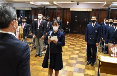 2021/10/28トピックnewsスポーツや文化などの分野で活躍した県内の中高生をたたえる本年度第1回の県学生栄誉賞授与式は28日、県庁であった。全国大会やコンクールなどで優秀な成績を収めた7団体8個人を表彰した。 受賞者43人のうち41人が出席。河野知事が記念の...